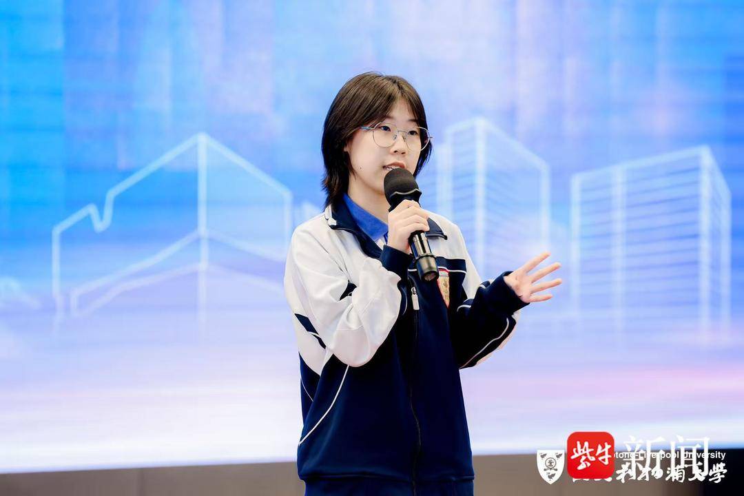 李金秋(下图)在演讲中提到,自己曾经很习惯用成绩来判断自己:成绩好一点,说明“还可以”;成绩不好,整个人仿佛就要被推翻一次。后来她接触到研学、项目式学习、小组展示和合作等不同于传统课堂的学习方式,“上课可以不是只有听、记和背,它还可以是去表达、去合作、去做出一些东西。”